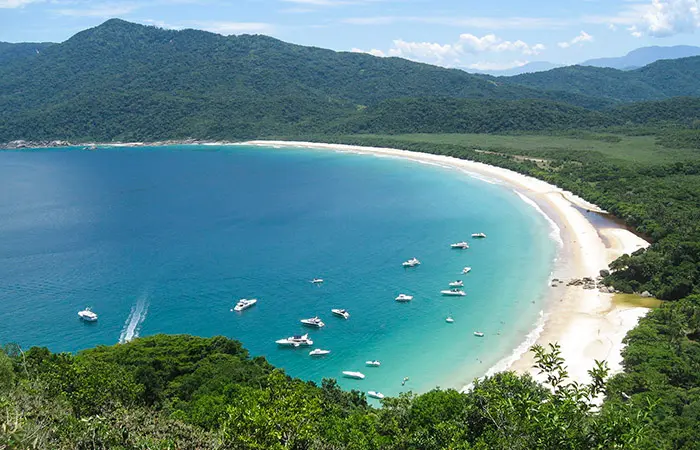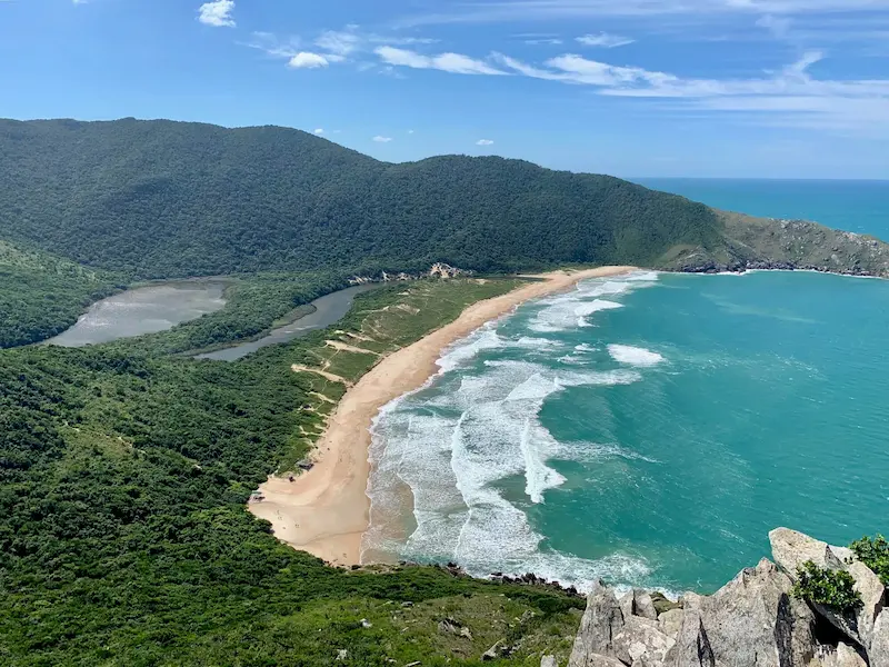 Uma das praias para visitar no Brasil se você ama trilhas e natureza selvagem. O acesso difícil protege seu cenário incrível, onde uma lagoa se encontra com o mar entre morros cobertos de mata nativa.